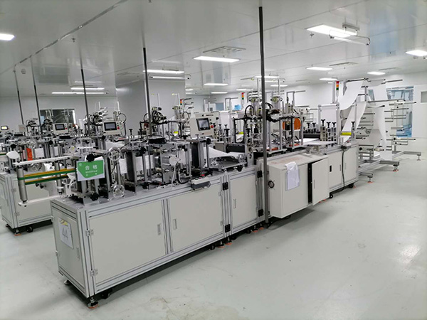 Equipment action process: 1. Raw material loading (place four or five layers of fabric according to product requirements) → push nose bridge → body knurling → left ear band welding → right ear band welding → coding (optional coding according to requirements Or laser marking) → folding → edge banding → cost cutting → finished product discharge